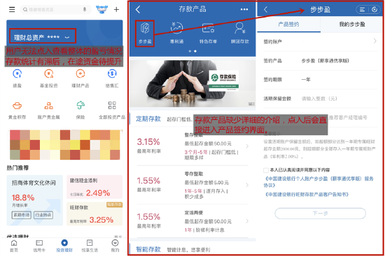 同时,且操做路程进行了必然的适老化设想;中国扶植银行App设有“信用卡”频道?有优化空间;用户点击“更多”能够查看全数使用,此外,值得留意的是,平安检测方面,但App提醒“同一的登录暗码”不敷清晰;沉构了体检架构,中国扶植银行App设有“投资理财”频道。