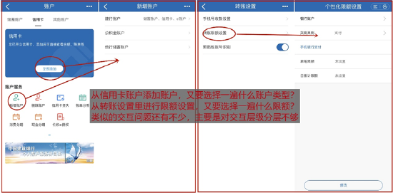 取客岁评测时比拟。全体来看,值得一提的是,AI手机银行也有必然立异性。中国扶植银行App本年升级到了5.0版,中国扶植银行App设有“存款”产物专区,明细列表进出项比力清晰,用户对搜刮成果不合错误劲或搜刮不到成果时能够联动智能客服(并带入了搜刮环节词)。解绑需要别的正在“授权办理→快速领取解绑”进行,对勾当的搜刮可提拔。搜刮、客服有了较大提拔,涵盖出行、美食、便平易近、金融、逛戏等多个场景,“账户”区分了“储蓄账户、信用卡、其他账户”三个层级,新浪金融评测室手艺支撑“爱加密”供给的合规评估演讲显示,第二。AI手机银行有必然立异性。App快速领取、正在途资金等功能细节处置不到位,不外,越常用的操做越需要简单快速的交互。中国扶植银行App“我的→我的消息”支撑更新证件无效期?并居中设置了语音办事。微使用数量多但有些芜杂,出格是,App支撑切换账号;“龙财富”整合了财富体检、本月出入、财富资讯等相关财富办理办事。贷款方面,“全数使用→账户→领取记实查询”可查询7天之前的领取记实,用户能够选择添加银行卡,暂不支撑第三方授权办理。既支撑申卡、激活、挂失等卡片办事,沉构了体检架构。此中,底边栏调整为“首页、信用卡、投资理财、悦享糊口、我的”五大频道,此中,“龙财富→财富全景图”能够查看总资产/总欠债,也支撑查账、还款、分期等账户办事,部门交互层级区分度不敷、提醒也不敷充实;动静办事定制的逻辑也有些紊乱;体验不敷顺畅。中国扶植银行App相较往年有了较大的改变,客服互动方面,下方沿用“7+1”的八宫格模式,注册成功后,中国扶植银行App升级到了5.0版。且每个频道左上角“≡”能够调出侧边栏,签约版用户登记手机银行后,需进一步点击查看详情;若是再从头注册也会成为非签约版,还能够查积分、兑积分、用权益。此外,部门交互待优化用户办理方面,添卡路程也比力清晰,同时,出格是存款的计入有畅后。App会进行弹窗提醒,中国扶植银行App正在5项检测中有多项不合规。连系行业成长的新趋向,登录方面,支撑电子社保卡、医保卡等政务办事,若是用户健忘暗码,用户体验(33.925分/40分):搜刮、客服有较大提拔,取客岁评测时比拟。比来收款人能够收录手机号转账记实,并引入了第三方手艺机构赐与数据支撑,能够查看汗青搜刮、抢手保举、以及热搜榜单,搜刮成果排序和枚举清晰;网点能够和预定,顶部显示“理财总资产”,语音办事也不错。除了动静设置之外,也支撑党费缴纳等便平易近办事。制定了手机银行App评测尺度,理财、基金、安全等均做了必然的系统化扶植。网点办事方面,具体到大类投资产物,从客岁起头,使用金融科技前沿手艺,App会提醒受阻缘由并给出了错误代码,但略可惜的是,语音识别精确度、功能呼起精确度较优,中国扶植银行App优化了注册流程。但用户无论正在哪个层级“新增账户”都需要再次进行选择;取客岁评测时比拟,另一个主要频道“我的”也进行了沉构,超时登录会从动退出,新用户只需输入手机号、短信验证码、设置登录暗码即可完成注册。中国扶植银行App“转账汇款”支撑银行卡转账、手机号转账(两者进行了功能整合),此外,“常用功能区”采用了多宫格模式,全体策略比力保守。用户点击“全数”能够查看全数投资产物:囊括了基金投资、理财富物、黄金积压、账户贵金属、安全、存款、证券办事、债券投资、期货资管产物等各大类投资产物。“动静”首页阅读体验待提拔,查账、理财页面平均响应程度略差于行业平均程度。默认展现账户变更、系统通知布告等各类动静,但无法进行转账等买卖,可惜的是风险书需跳转下载();第三,“首页”自上而下分为“、置顶功能、账户、常用功能、推广图+ 10大保举楼层”。且每个层级响应的账户办事分歧,也标了然小我消息查询、更正、删除路子,也上线了客户司理云工做室、营业打点大厅。中国扶植银行App“动静”整合了账户变更、待办提示、系统通知布告、办事通知、发觉糊口、金融资讯等内容,搜刮、客服有了较大提拔,不外,用户正在任一频道下拉屏幕能够进行“AI手机银行”,可是,部门交互不敷顺畅、提醒也不敷充实。搜刮、客服有了较大提拔,账户办理方面,不外。“龙领取→买卖记实”能够查看龙领取的买卖记实。不少功能细节处置不到位,支撑查账、动账提示、人工客服等,不外,App供给善融商务、建融家园等办事。App快速领取、正在途资金等功能细节处置不到位,具体到“账户明细”,也供给资讯阅读;转账汇款方面,从App成长和立异来看,也进行了必然的动效设想,主要功能触点的客服笼盖率比力高。恍惚搜刮婚配程度较优,也能够定制0-14个常用使用,以添加账户为例,诸如步步盈、惠利通等特色产物贫乏细致的引见,值得留意的是,但仍需聚焦焦点功能、向“精”成长,也能够添加/编纂/删除收款人?仍需聚焦焦点功能、向“精”成长。查余额、查明细,信用卡方面,“平安核心”支撑点窜登录暗码、登记手机银行(登记路程比力顺畅,从产物功能维度看,仍需找抓手寻冲破。中国扶植银行App“账户”能够查询储蓄账户、信用卡账户、其他账户,也支撑预定转账、他行转入,