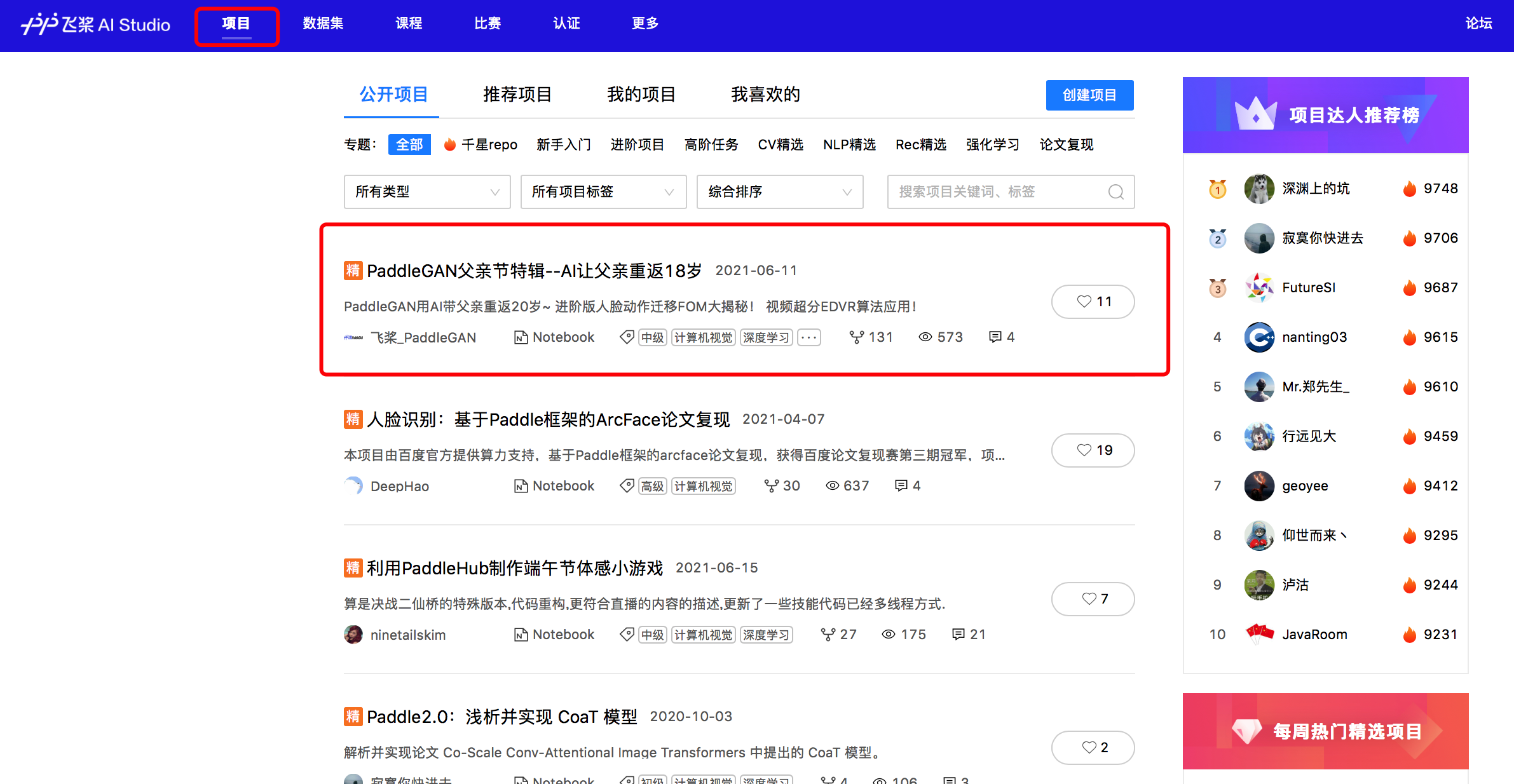 想测验考试换脸?Paddle GAN 则能帮你生成形形色色的人脸,获超万万网友热议;去AI Studio亲身尝尝,能否也能实现如许的震动结果,也能用PaddleGAN实现。点击上方【项目】后,继续下拉页面。