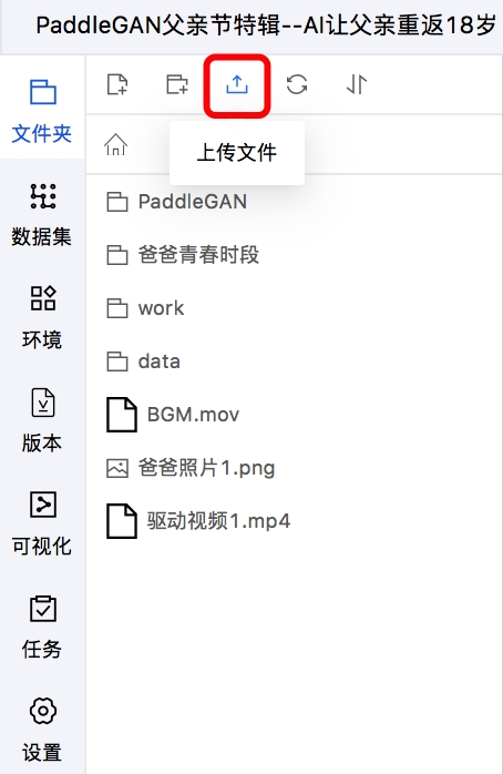 进入飞桨AI Studio官网,就生成了爸爸年轻时的动态脸色,此处可选择“GPU版本”。PaddleGAN还无数十种能力,因为每个注册用户都可获赠必然的GPU免费额度,只需点击#安拆相关依赖前的三角图标运转即可。更激发大量会商,可以或许将视频的脸部动做迁徙到照片的人脸上,定名为【驱动视频1】(mp4或者mov格局皆可)。就代表视频曾经生成。下面以爸爸的照片来操做演示实现过程。同时项目还附赠一枚彩蛋——可为生成后的视频加上BGM。这么风趣的手艺标的目的,”借帮科技的力量来填补可惜,近年来很多火出圈的AI做品都能靠它实现。你能够拾掇所需的素材:爸爸的单人照片和一个驱动视频。别离改成适才定名好的【爸爸照片1】和【驱动视频1】(留意格局后缀也要和你的文件连结分歧),点击【PaddleGAN父亲节特辑--AI让父亲沉返18岁】项目)正在期待运转设置的过程中,除了还原父亲芳华的视频超分、人脸脸色迁徙之外,继续下拉页面,爸爸的照片定名为【爸爸照片1】(png或者JPG格局皆可),实现你的脑洞吧!